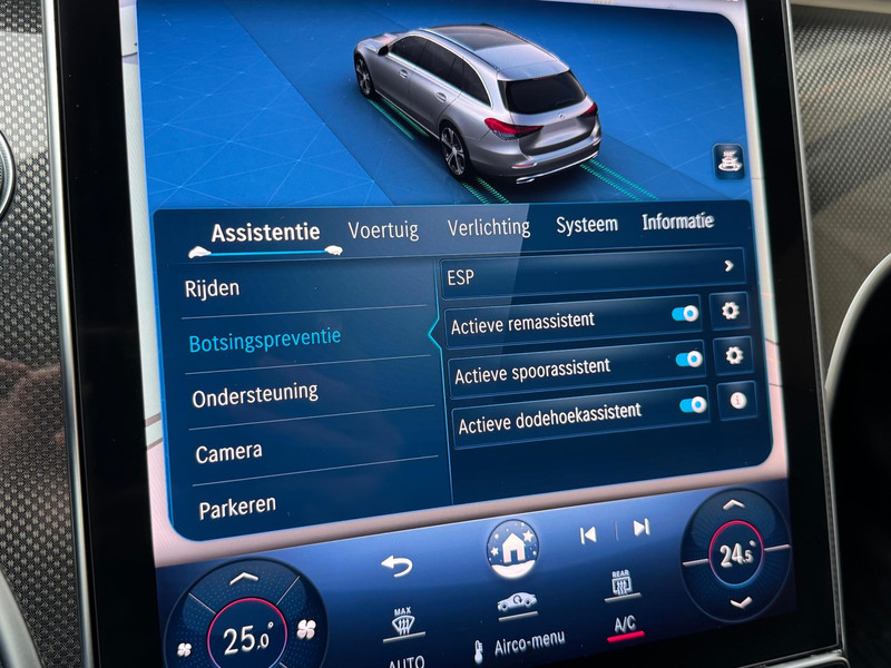 TE KOOP AANGEBODEN: In keurig nette staat verkerende en vooral zeer sportief rijdende Mercedes-Benz C300e Estate Automaat uit 2024 in de kleur zwart metallic. De auto staat op dit moment op 4 prachtige 18 inch licht metalen wielen met zeer goede banden, is altijd keurig onderhouden geweest. Ook is de auto voorzien van o.a automatische airco, cruise control adaptief, elektrisch pakket, multifunctioneel lederen stuur en versnellingspook, sportstoelen verwarmd, full-map navigatiesysteem, parkeersensoren voor en achter, achteruitrijcamera, carbon interieurafwerking, LED/Matrixverlichting, elektrisch uitklapbare trekhaak, apple carplay, Burmester Audio etc.etc.. Ook zijn er 2 sleutels aanwezig met afstandsbediening. Tevens is de auto APK goedgekeurd tot 15-03-2028
