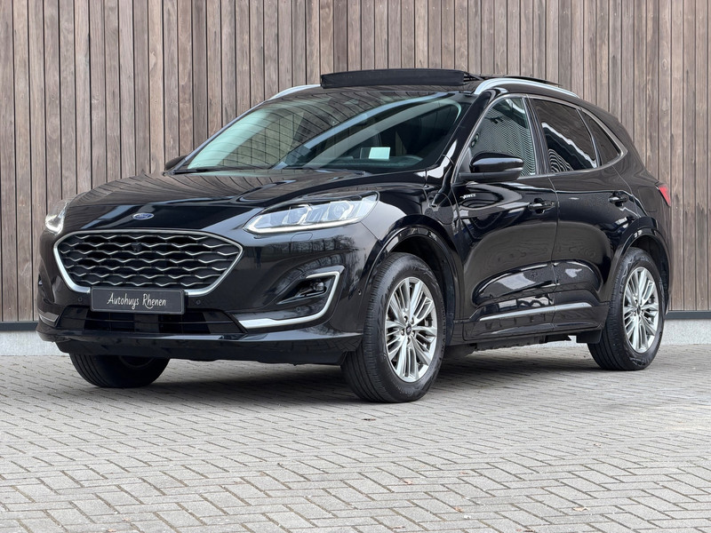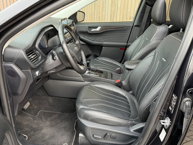 TE KOOP AANGEBODEN: In nette staat verkerende en zeer comfortabel rijdende Ford Kuga 2.5 PHEV Vignale Automaat uit 2022 in de kleur zwart metallic. De auto staat op dit moment op 4 prachtige 18 inch wielen met goede banden, is altijd keurig onderhouden geweest wat wel tot uiting komt zowel aan de binnen als aan de buitenkant van de auto. Ook is de auto voorzien van o.a automatische airco, adaptive cruise control, elektrisch pakket, multifunctioneel lederen stuur, groot full-map navigatiesysteem, parkeersensoren voor en achter, vermoeidheidsdetectiesysteem, Led dagrijverlichting voor en achter, elektrische verstelbare bestuurdersstoel, achteruitrijcamera, stoelverwarming voor en achter, voorruitverwarming, stuurverwarming, head-up display, schuif/panoramadak, trekhaak etc.etc.. Ook zijn er 2 sleutels aanwezig met afstandsbediening. Tevens is de auto APK goedgekeurd tot 30-11-2026