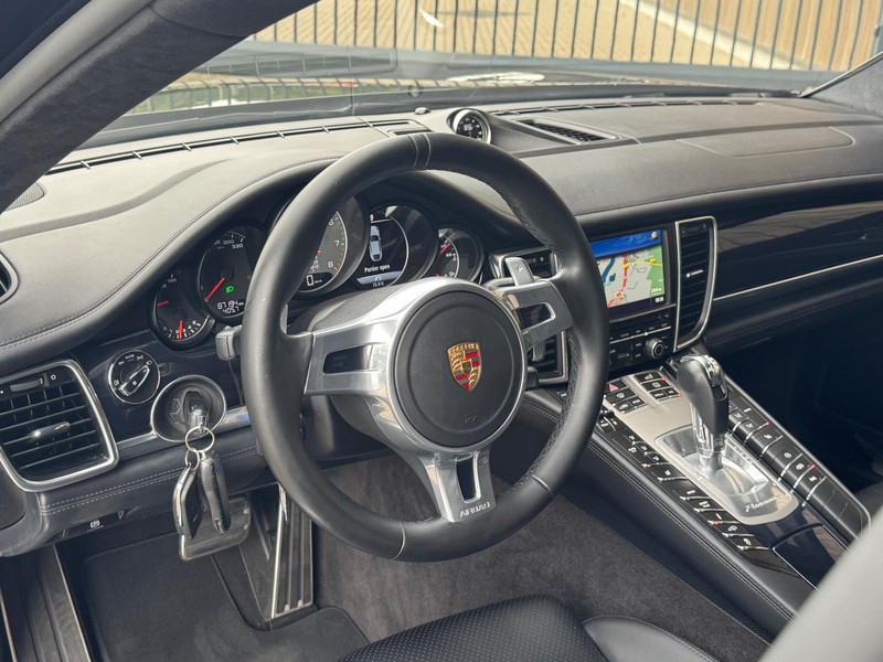 TE KOOP AANGEBODEN: Schitterende en een zeer snelle en sportieve Porsche Panamera 4.8 GTS PDK Automaat uit 2015 in de kleur zwart metallic. De auto staat op dit moment op 4 prachtige 20 inch originele Porsche licht metalen wielen met goede banden, is altijd keurig onderhouden geweest wat wel tot uiting komt zowel aan de binnen als aan de buitenkant van de auto. Ook is de auto voorzien van o.a automatische airco, cruise control adaptief, elektrisch pakket, lederen stuur, volleren luxe bekleding, achteruitrijcamera, groot full-map navigatiesysteem, parkeersensoren voor en achter, Led dagrijverlichting voor en achter, elektrische stoelen, schuif/panoramadak, BOSE geluidsinstallatie, luchtvering, alcantara hemelbekleding, elektrische trekhaak, Porsche logo in de stoelen, stoelverwarming achter, sportuitlaat, PDLS+ koplampen etc.etc.. Ook zijn er 2 sleutels aanwezig met afstandsbediening. Tevens is de auto APK goedgekeurd tot 24-03-2026